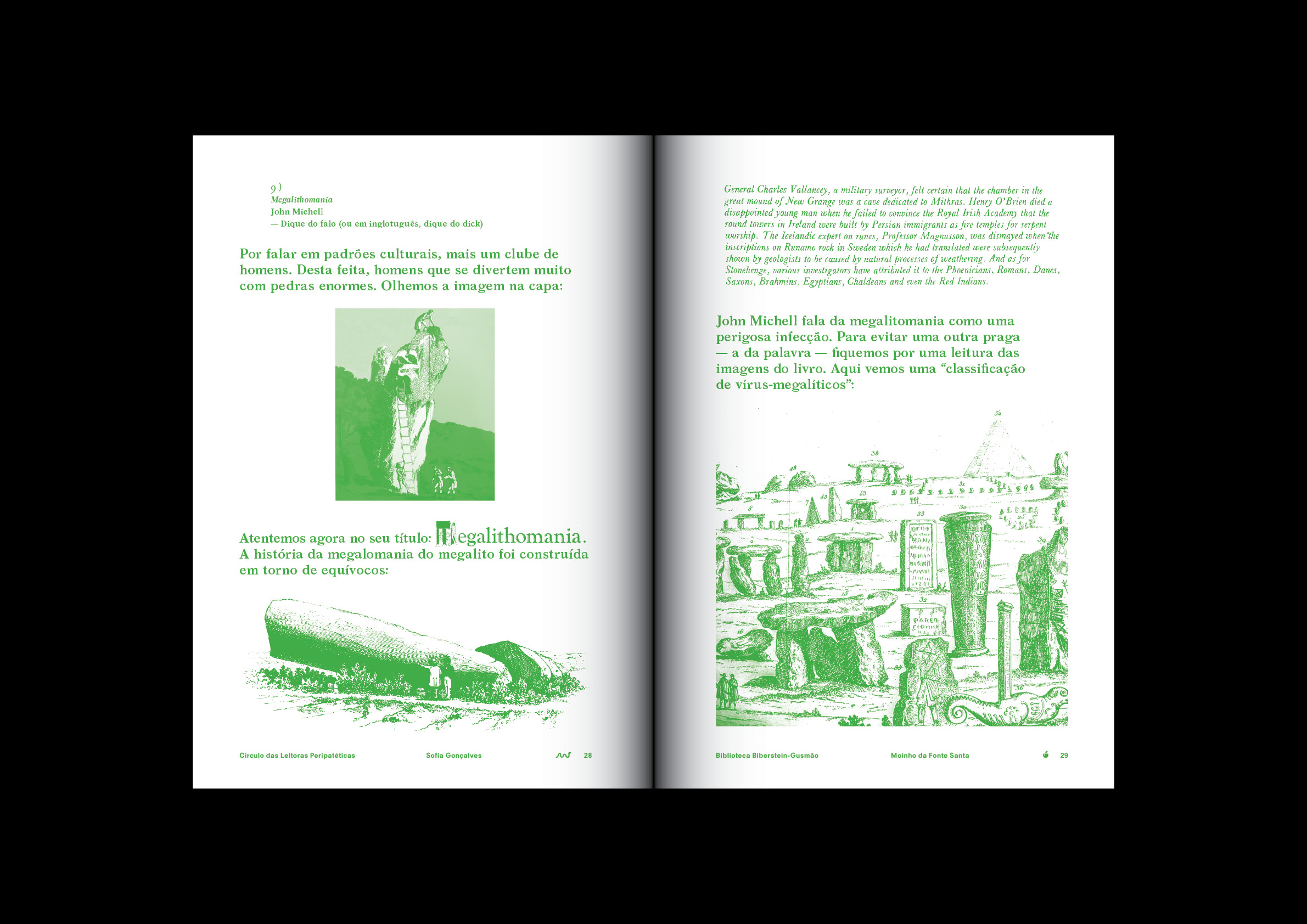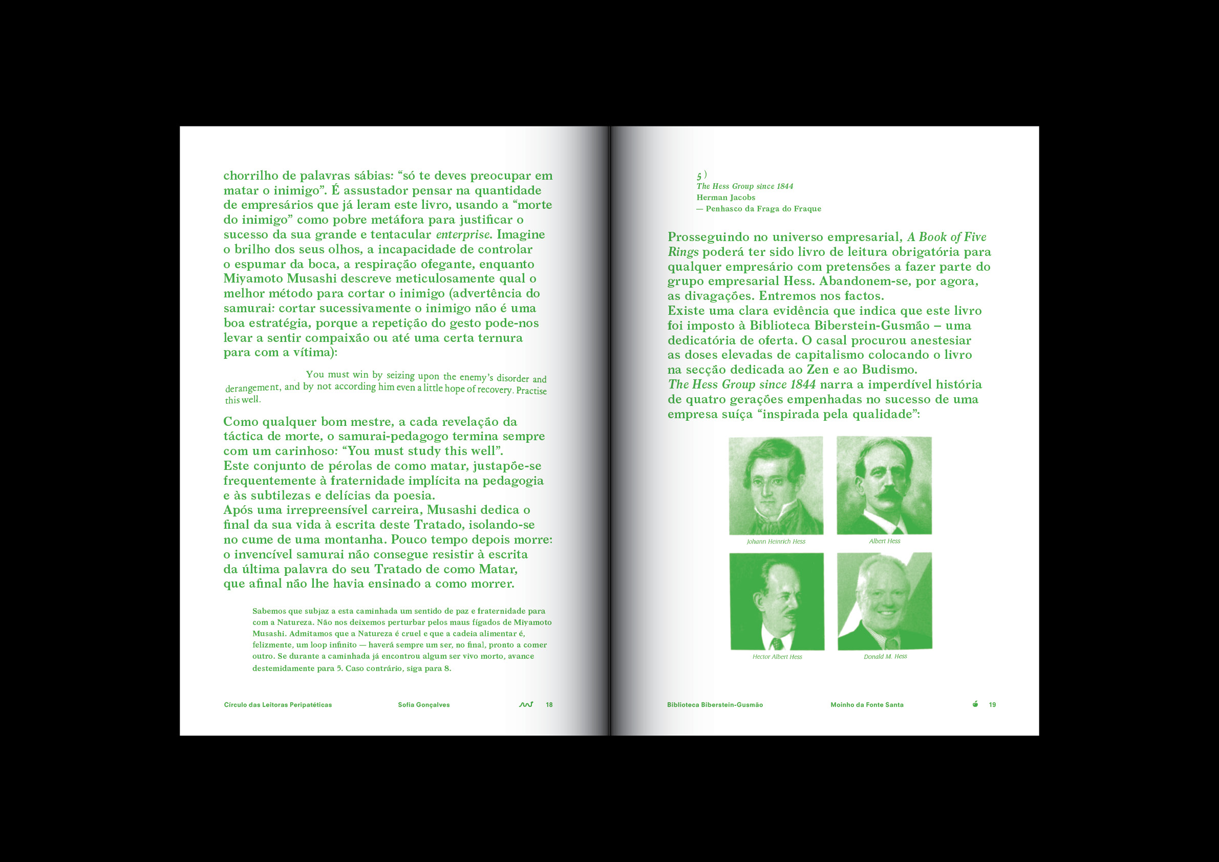 A publicação, que resulta da residência, composta por três volumes e um cartaz, funcionou como libreto de uma leitura-caminhada e apresenta três roteiros de acesso à biblioteca Biberstein-Gusmão e à sua paisagem contígua, para todos os eventuais residentes da Fonte Santa. Para os restantes, apresenta o vasto e eclético universo bibliográfico do casal Michael Biberstein e Ana Nobre de Gusmão.